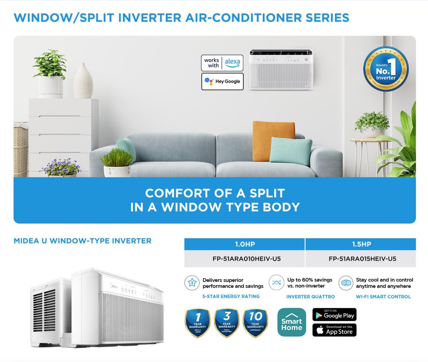Smart Control: The Midea U is Wi-Fi-enabled, it can be controlled from anywhere through the cloud using the MideaAir app on iOS or Android. You can also use voice commands with Alexa or Google Assistant if you prefer.