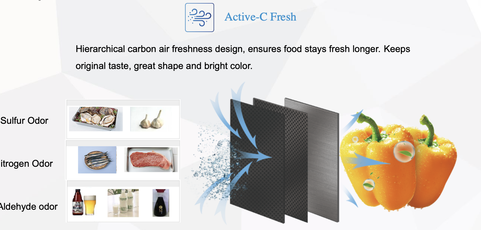 Active C Fresh- Multi layer carbon air freshness design ensures food stays fresh